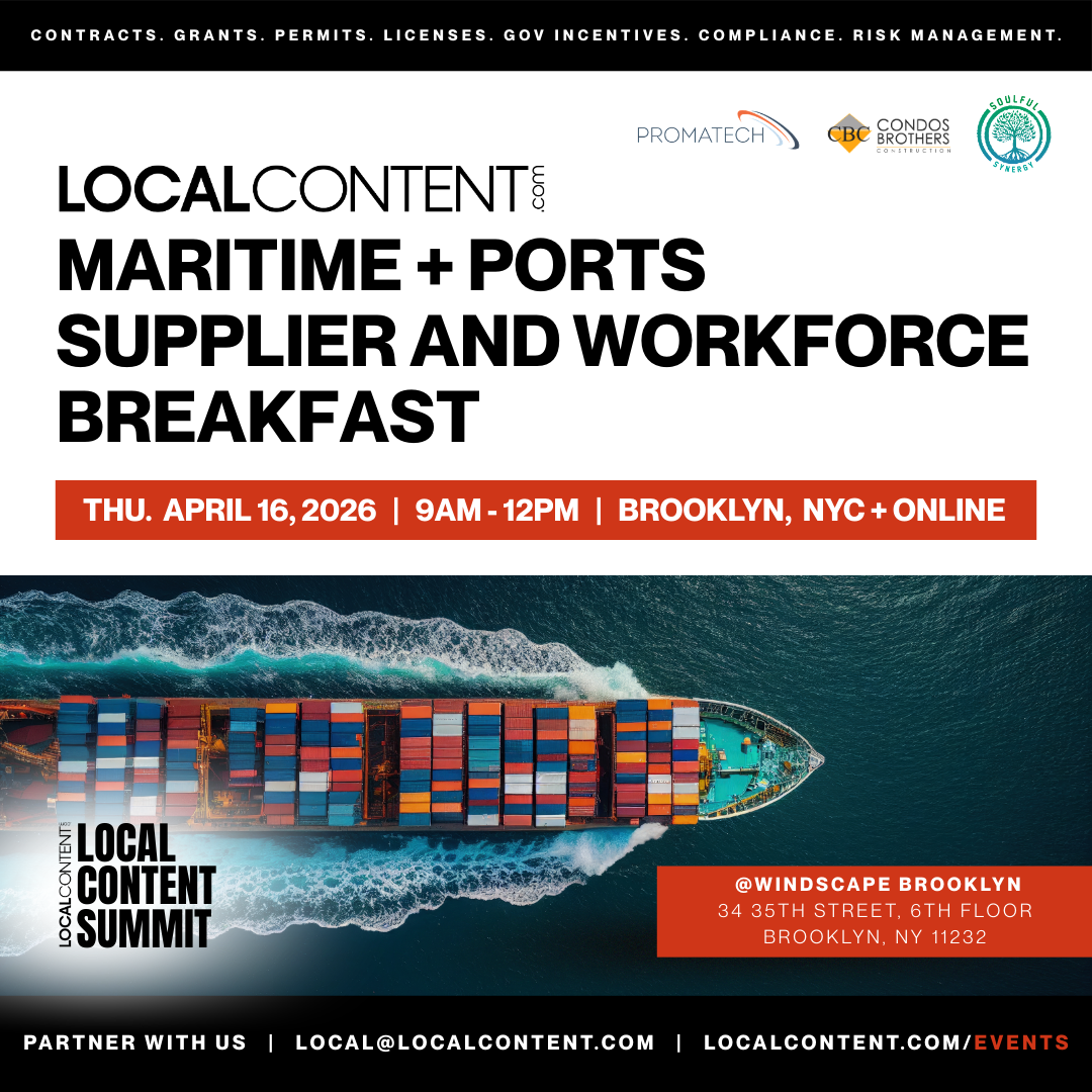Join leaders from government, industry, and community organizations for a focused morning on how local content requirements are reshaping competitiveness, compliance, and collaboration across maritime, ports, and supply chain sectors.