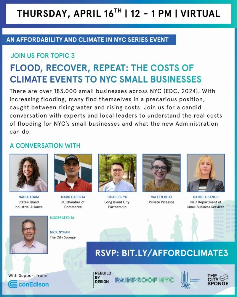 Topic 3 in "Affordability and Climate in NYC" Discussion Series from Rebuild By Design, Waterfront Alliance, and The City Sponge, with support from ConEdison.